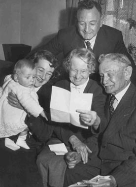 Four Generations in 1951. Top - Bert. Left to right - John Rogers, Iris Rogers (nee Owen), Florence Owen & Frank Owen.
